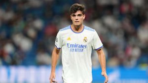 Miguel Gutiérrez durante un partido con el Real Madrid en 2021